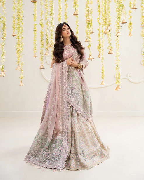 Step into timeless sophistication with this exquisite floral embroidered lehenga choli, designed to capture the essence of modern Pakistani fashion. Featuring a harmonious blend of soft pastel hues and intricate hand-crafted beadwork, this outfit reflects elegance with every detail. The delicate embroidery enhances its luxurious appeal, making it an ideal choice for weddings, engagements, and festive celebrations.